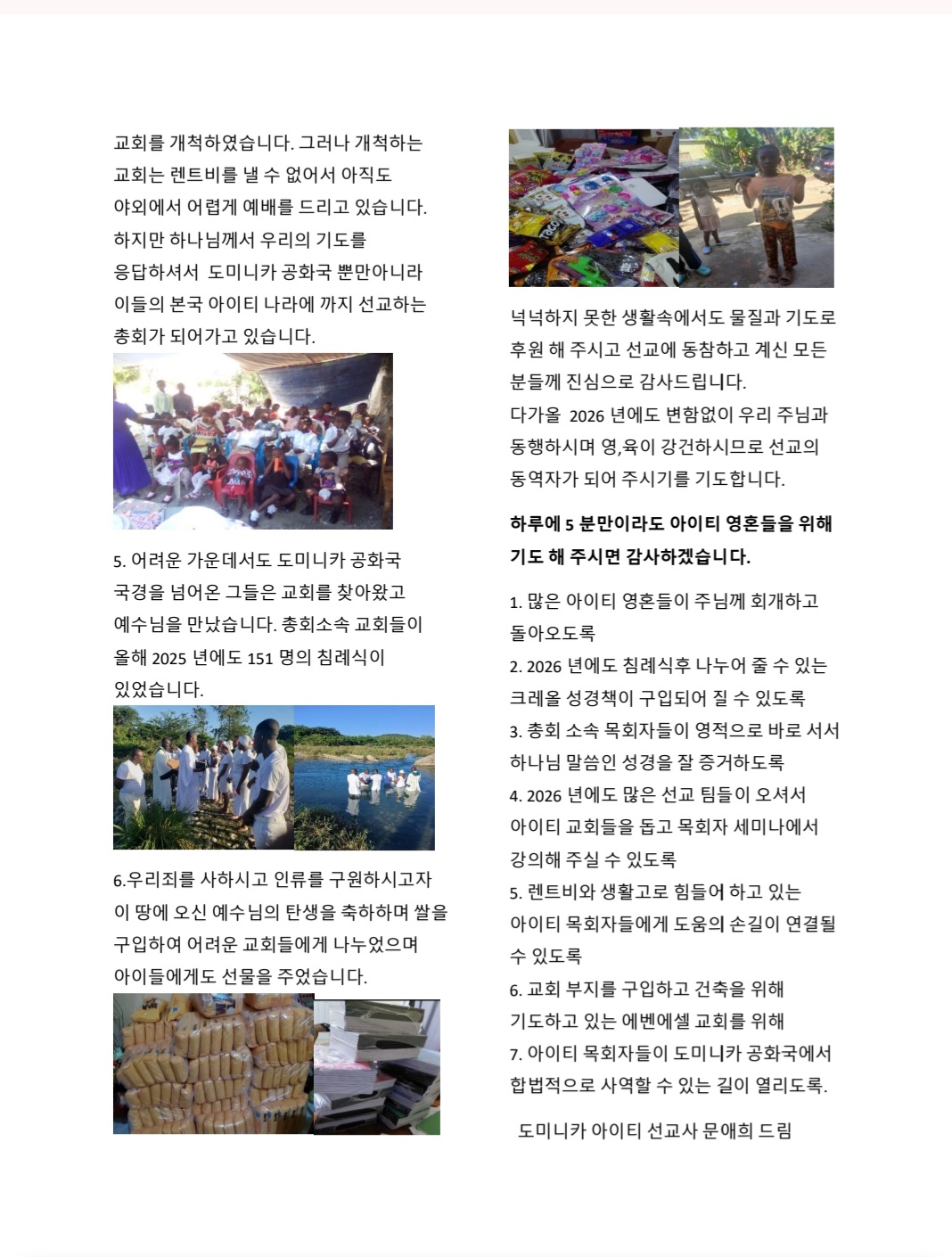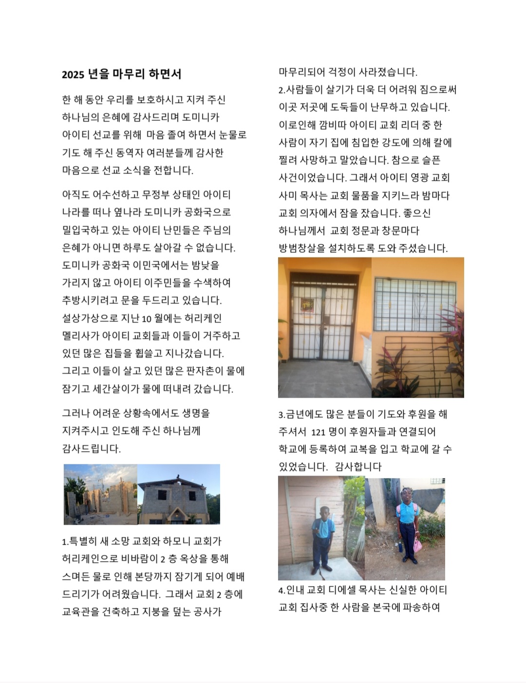 선교지소식 (도미니카) 최기철/문애희 선교사님 선교소식 Publish on December 30,2025 | 복된교회 페이지 정보 작성자 복된교회 댓글 0건 조회 105회 작성일 25-12-30 19:24 목록 본문 (도미니카) 최기철/문애희 선교사님 선교소식 다음글(한국) 소망 공동체 선교소식 25.12.17 댓글 0 댓글목록 등록된 댓글이 없습니다. 목록
